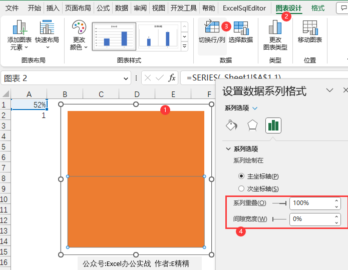 这一步是基础设置的最后一步,点击图表,在【图表设计】中点击【切换行列】,然后设置【设置数据系列格式】,