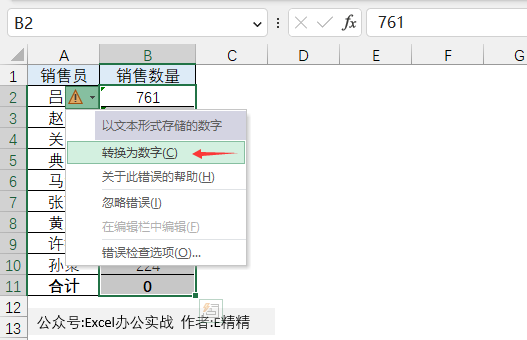 文本型数值比较典型的特征就是左上角有“绿帽”,一个绿色三角!